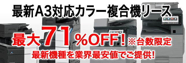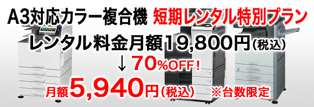 | 2024.2.8 | A3対応カラー複合機レンタル料金70%OFF!月額5,940円!詳しくはこちら |