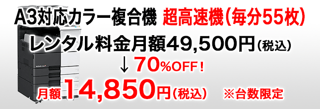 | 2024.2.8 | カラー複合機超高速機毎分55枚 レンタル料金70%OFF!月額14,850円!詳しくはこちら |